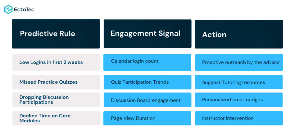 Las reglas predictivas pueden ayudar a las instituciones a pasar de la elaboración de informes de datos reactivos a sistemas proactivos de asistencia a estudiantes.